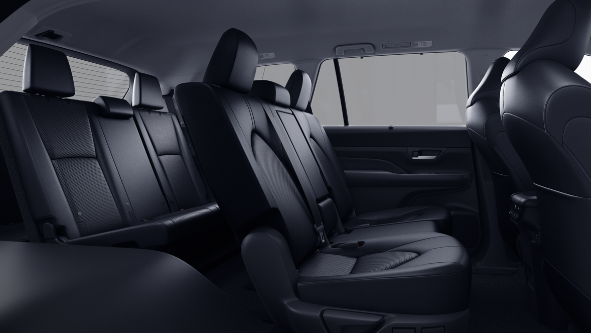 • 7-passenger seating with second-row fold-down captain's chairs and fold-down inboard armrests, adjustable headrests and two cup holders mounted on the floor; and 60/40 split, fold-down third-row seats with sliding headrests and recline function